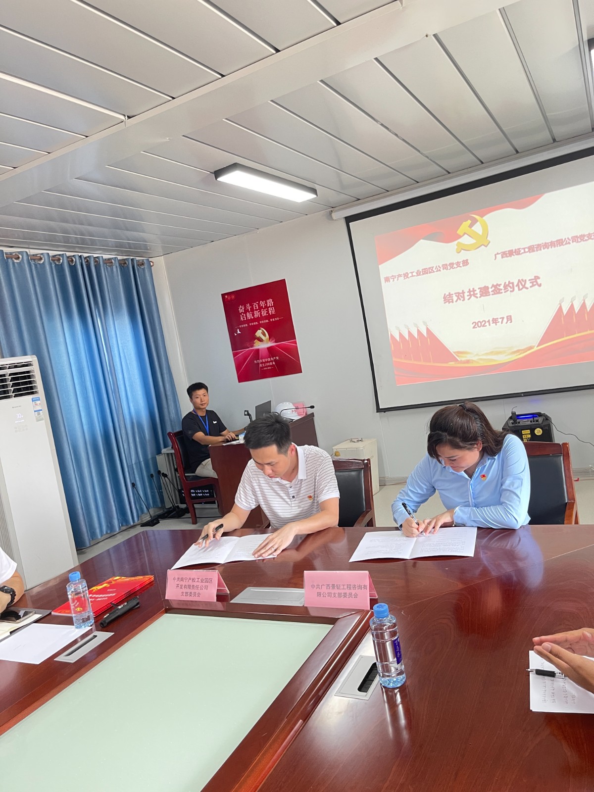 7月23日,公司党支部组织员工参加由南宁产投集团牵头举办的“学史增信,先锋引领,亲商强企”大行动主题党日活动。会间,我公司与南宁产投工业园区公司党支部签订结对共建协议,企业间实现优势互补,深化合作实现共赢,以党建促生产,促进各方企业的发展。